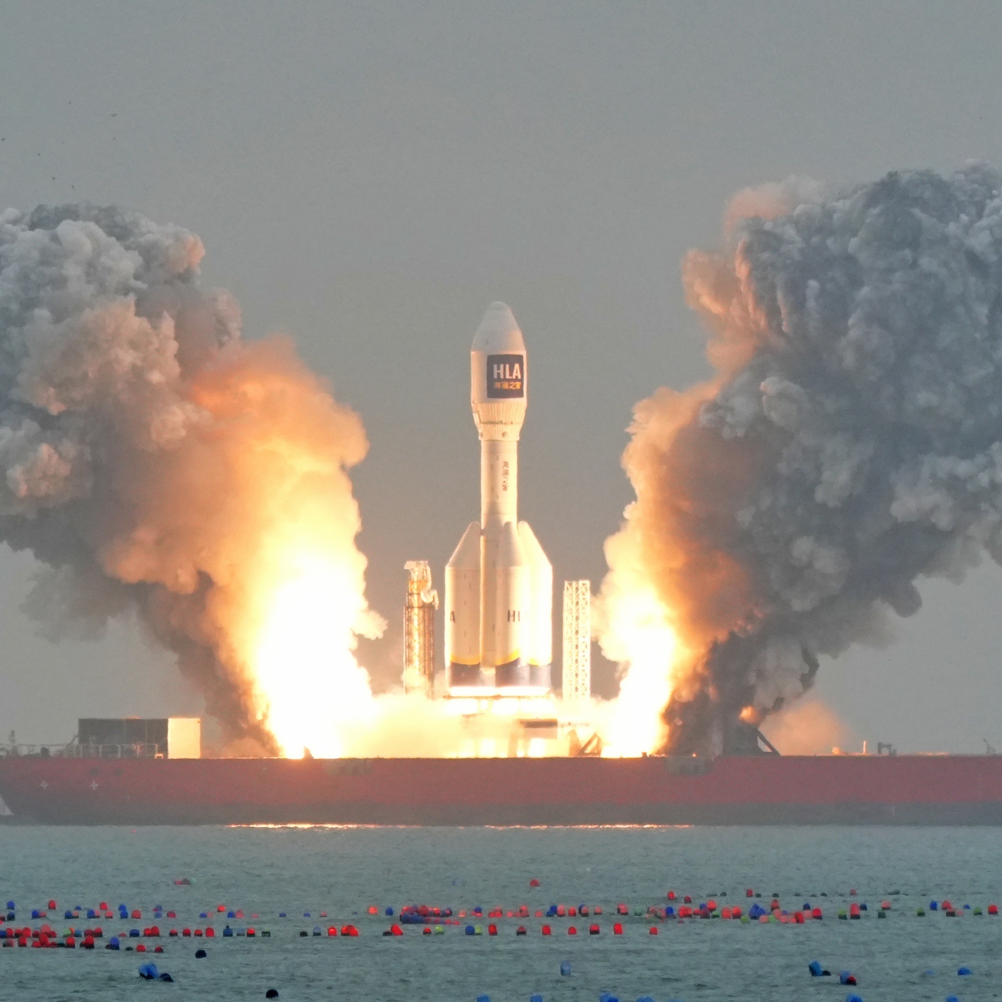「引力一号」遥二运载火箭在海上平台发射升空,山东海阳。10月11日,中国民营航天企业东方空间自主研制的「引力一号」固体运载火箭执行第2次发射任务,成功将吉林一号宽幅02B07星、数天宇星01和02试验星共3颗卫星送入预定轨道。「引力一号」是目前全球起飞推力最大的固体燃料运载火箭,采用三级半构型,高约30米,整流罩直径4.2米,起飞推力达600吨,近地轨道运载能力为6.5吨,500公里太阳同步轨道运载能力为4.2吨,具备规模化部署低轨卫星的能力。摄影师:iDaily Media