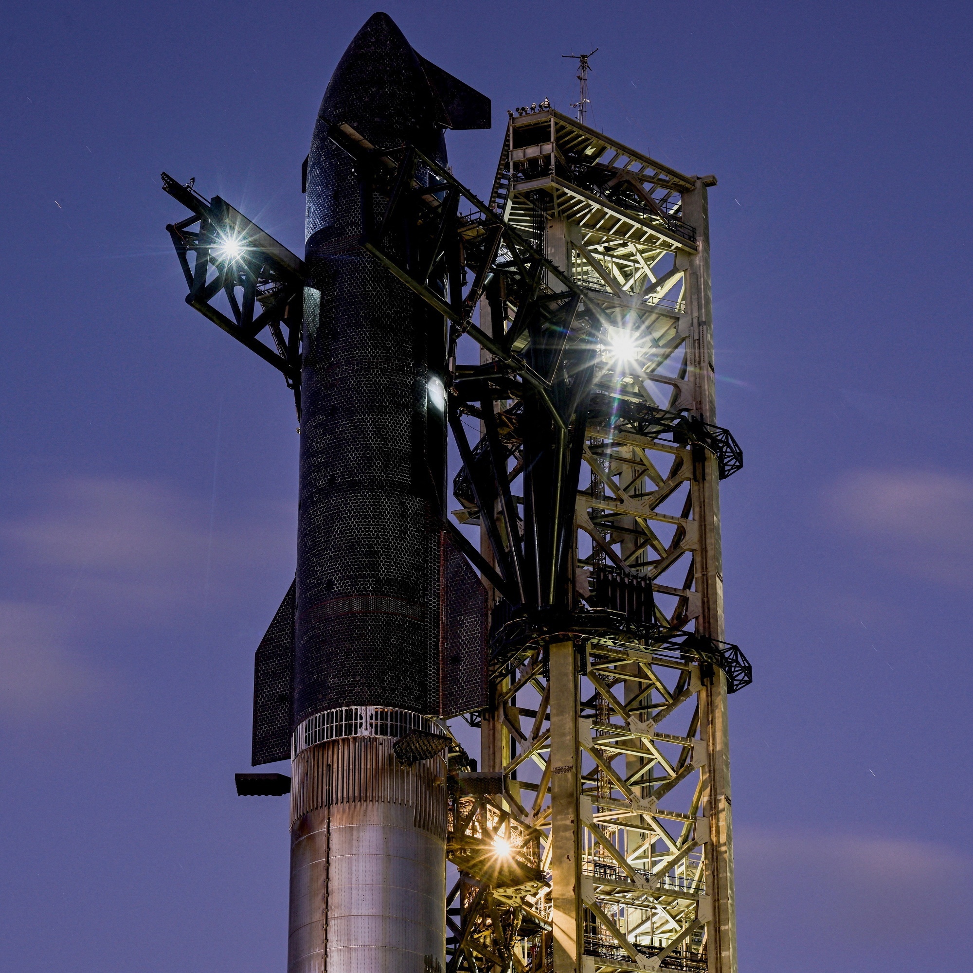 SpaceX 星舰原型机与超重型助推器组合体竖立在发射台,得克萨斯州。10月12日,SpaceX 宣布将于美东时间10月13日19时15分进行星舰第11次试飞,发射窗口持续75分钟,主要目标包括部署8颗模拟星链卫星、对星舰隔热系统进行极限压力测试以及超重型助推器的海上悬停和受控溅落等。本次任务使用的超重型助推器为第二次发射,并搭载24台再次使用的猛禽发动机。摄影师:Steve Nesius